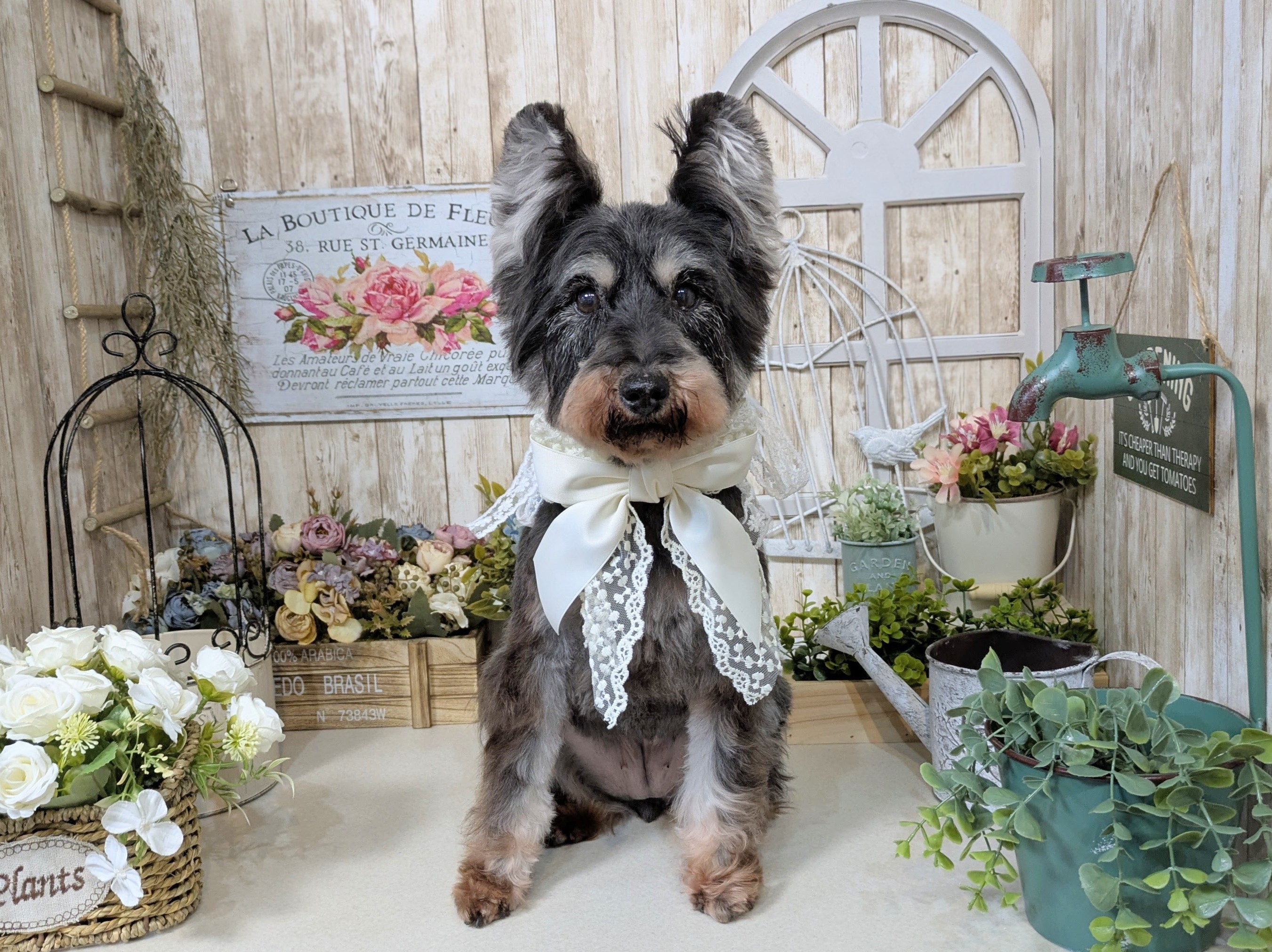 ご閲覧いただき誠にありがとうございます。岸和田市のトリミングサロン Completion では、トリミングサービスをご利用のお客様へ、毎月テーマが変わる専用フォトブースで撮影したお写真を、体調管理カードの裏面に印刷してプレゼントしております。